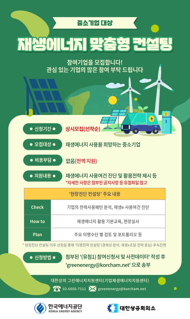 | ‒ | 중소기업 재생에너지 맞춤형 컨설팅 모집 안내 |