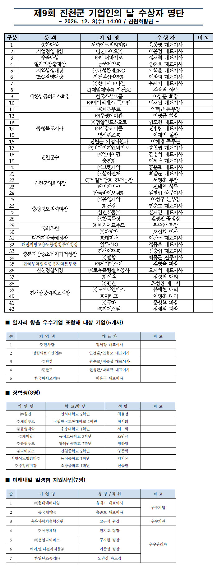| ‒ | 제9회 진천군 기업인의 날 수상 명단 |